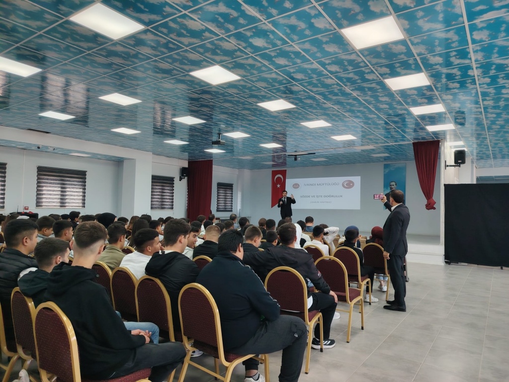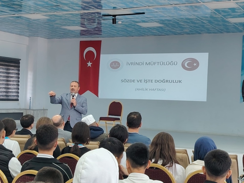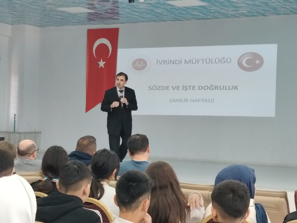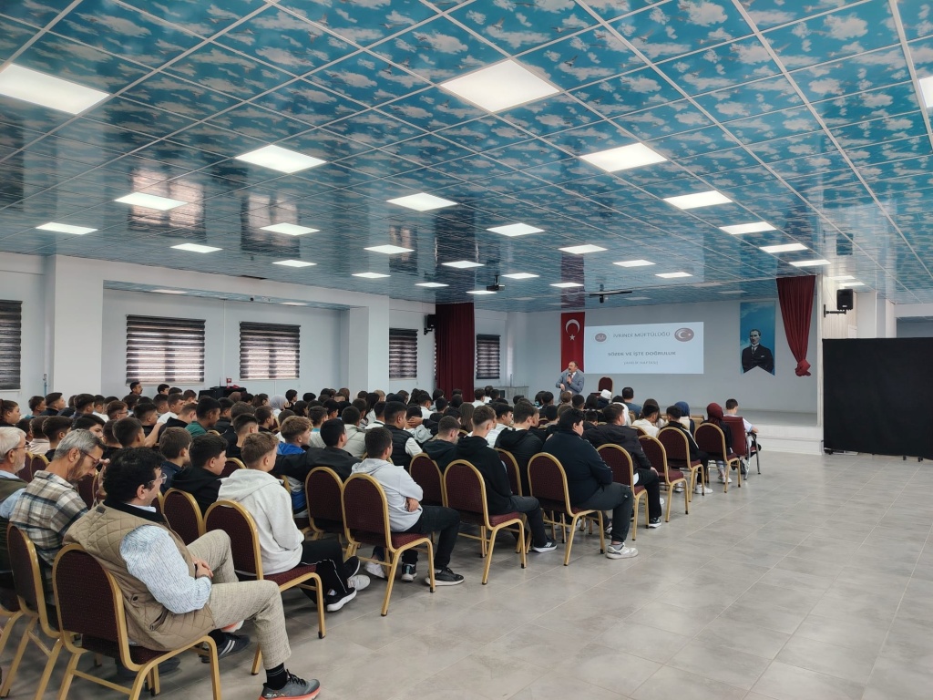 EDES ( Çevreme Duyarlıyım, Değerlerime Sahip Çıkıyorum) Programı kapsamında İlçe Milli Eğitim Müdürü Sn. Mustafa YÜCEL’ i ve İlçe Müftüsü Sn. Eyüp KALKAN’ ı okulumuzda misafir ettik. 23-29 Eylül tarihleri arası Ahilik Haftası dolayısıyla İlçe Milli Eğitim Müdürü Sn. Mustafa YÜCEL Ahiliğin ve ailenin önemini anlatan bir konuşma gerçekleştirdi. İlçe müftüsü Eyüp KALKAN ise ÇEDES programının bu ayki konusu olan 'Doğruluk' temalı konuşmasını gerçekleştirdi. Program sonrası İlçe müftülüğü öğrencilerimize meyve suyu ve kek ikramında bulundu.